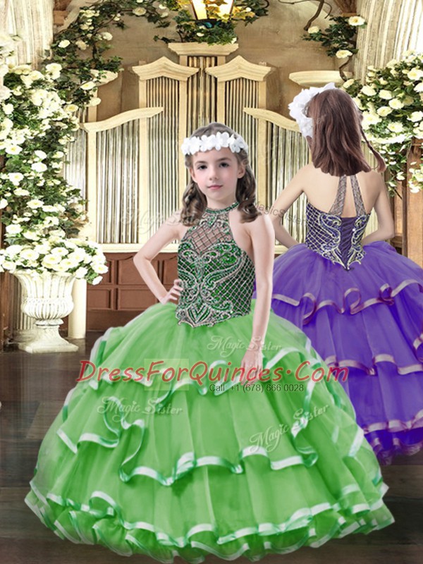 Top Selling Green Lace Up Quinceanera Dresses Beading and Ruffled Layers Sleeveless Floor Length