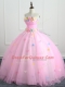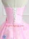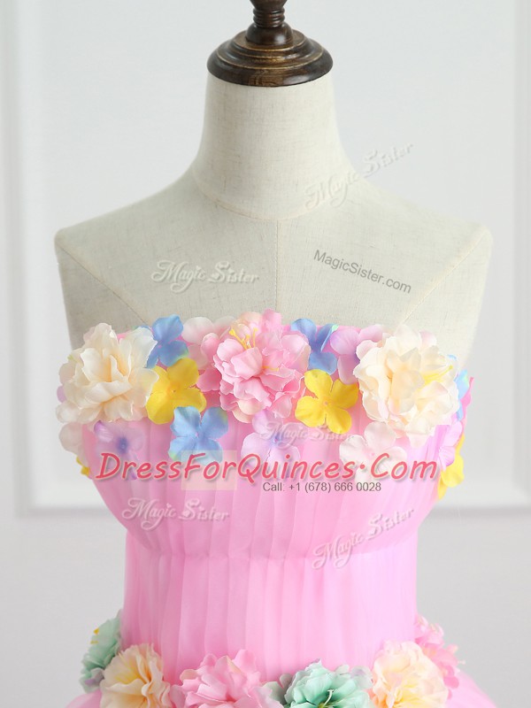 Top Selling Pink Strapless Lace Up Appliques and Hand Made Flower Ball Gown Prom Dress Sleeveless