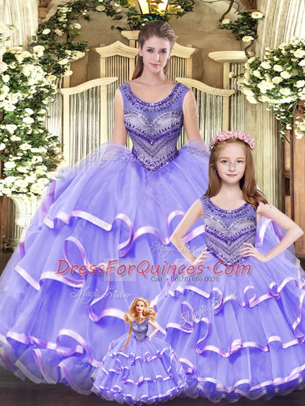 Tulle Sleeveless Floor Length Vestidos de Quinceanera and Beading and Ruffled Layers
