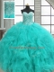 Turquoise Ball Gowns Organza Sweetheart Sleeveless Beading and Ruffles Floor Length Lace Up Sweet 16 Dresses
