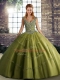 Unique Straps Sleeveless Lace Up Quinceanera Dresses Olive Green Tulle