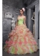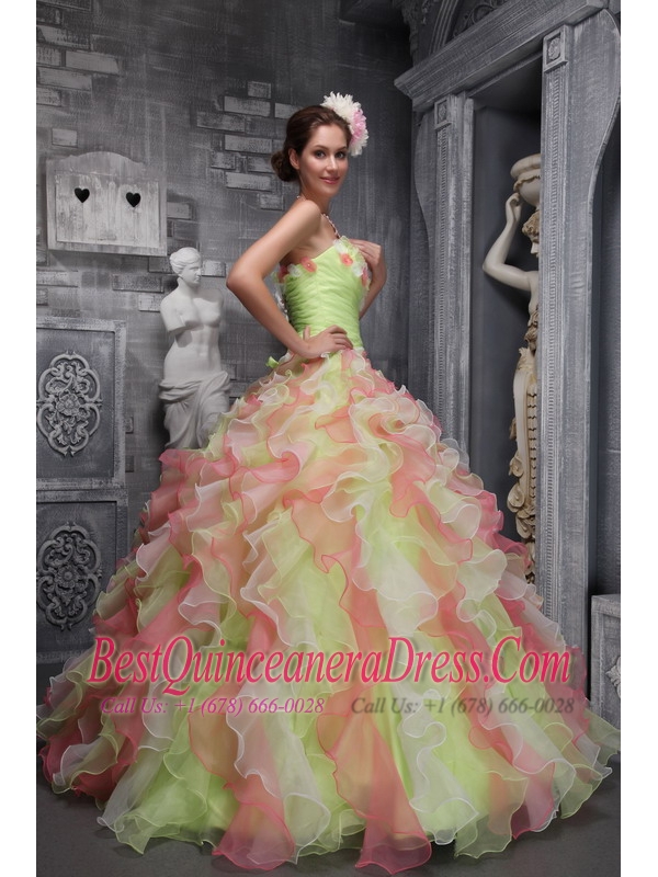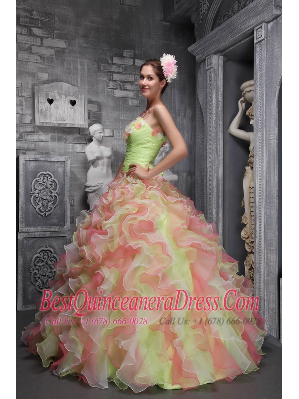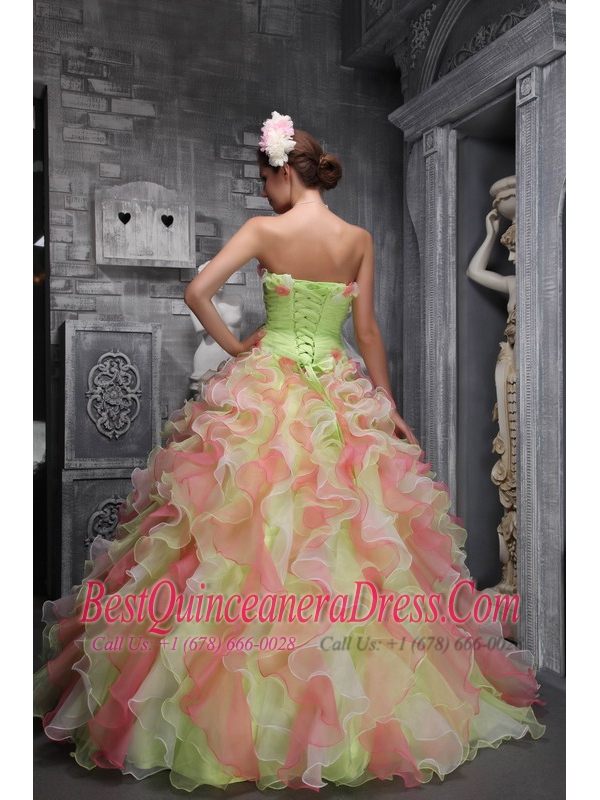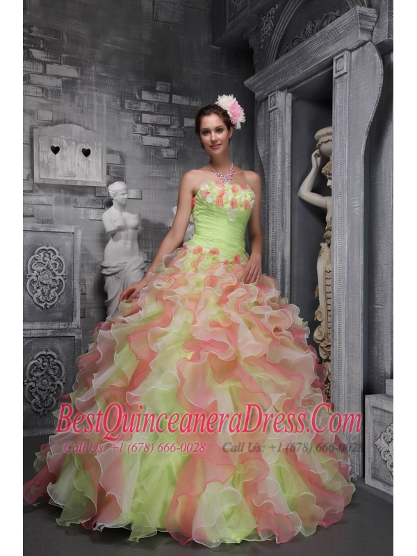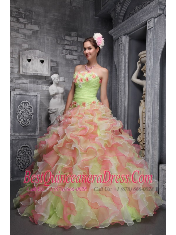 Colorful Ball Gown Strapless Floor-length Taffeta and Organza Hand Made Flowers Quinceanera Dress