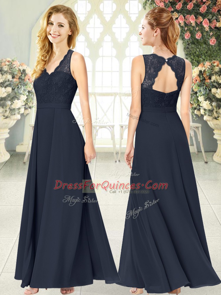 Black Prom and Party with Lace V-neck Sleeveless Zipper