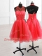 Custom Fit Watermelon Red High-neck Neckline Sequins Prom Dresses Sleeveless Lace Up