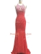 Customized Sleeveless Chiffon Brush Train Criss Cross Evening Dress in Red with Beading