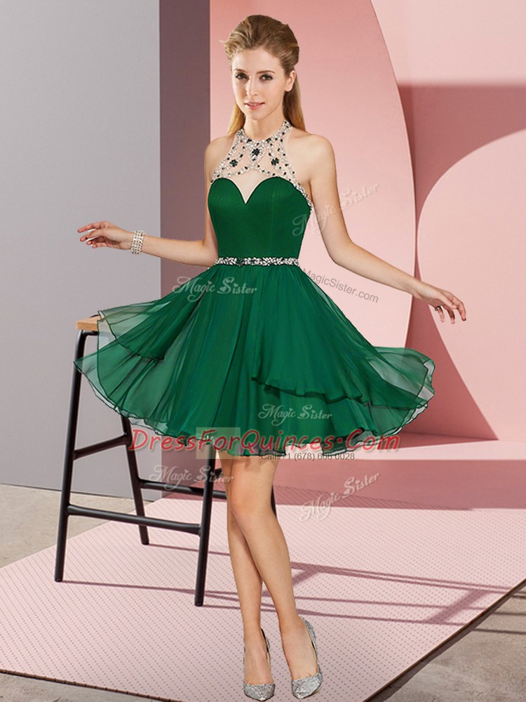 Dark Green Sleeveless Beading Mini Length Prom Dress