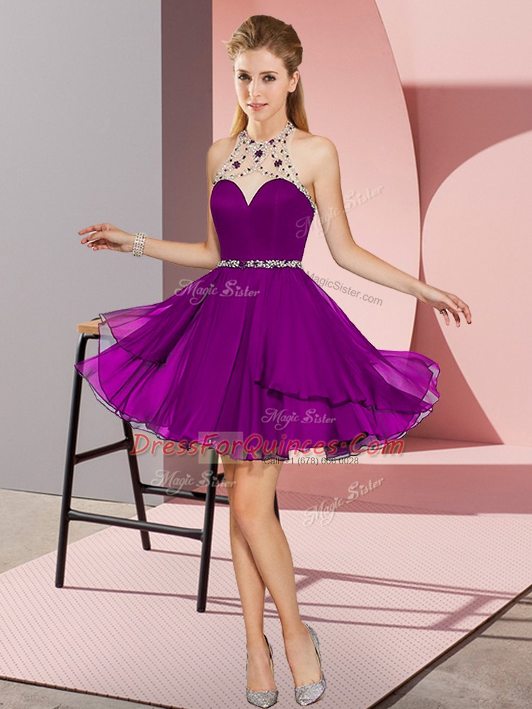 Dazzling Mini Length Zipper Dark Purple for Prom and Party with Beading