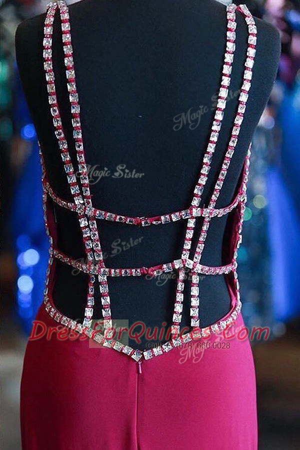 Delicate Fuchsia Sleeveless Satin Zipper Prom Gown for Prom