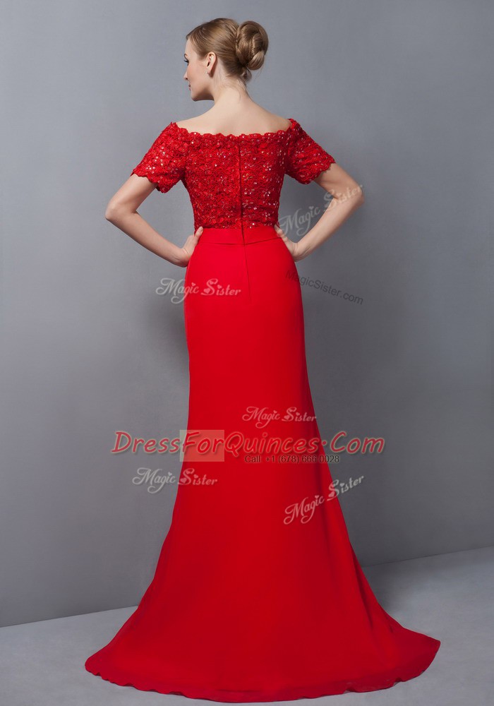 Discount Empire Short Sleeves Aqua Blue Dress for Prom Sweep Train Zipper