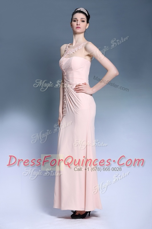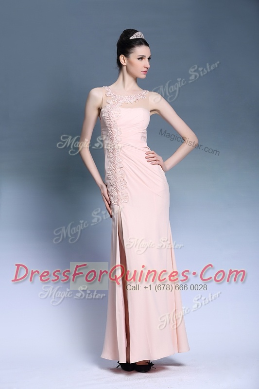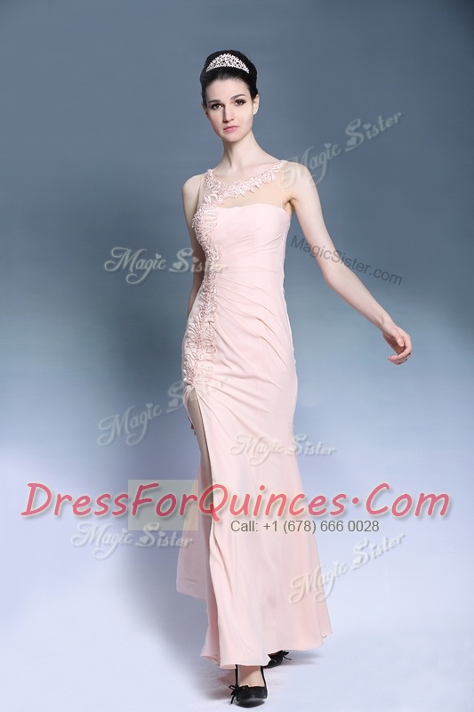 Dramatic Baby Pink Column/Sheath Appliques Prom Party Dress Side Zipper Chiffon Sleeveless Ankle Length