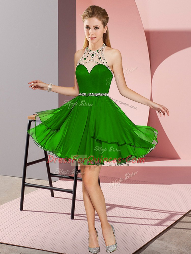 Exceptional Sleeveless Mini Length Beading Zipper Homecoming Dress with Green