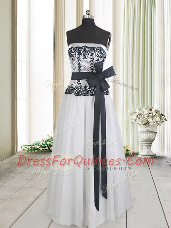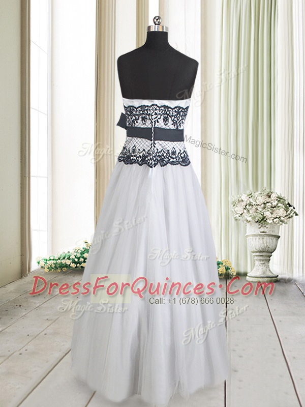 Exceptional White And Black Zipper Prom Party Dress Lace and Bowknot Sleeveless Floor Length