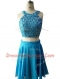 Fabulous Teal Scoop Zipper Beading Evening Dress Sleeveless