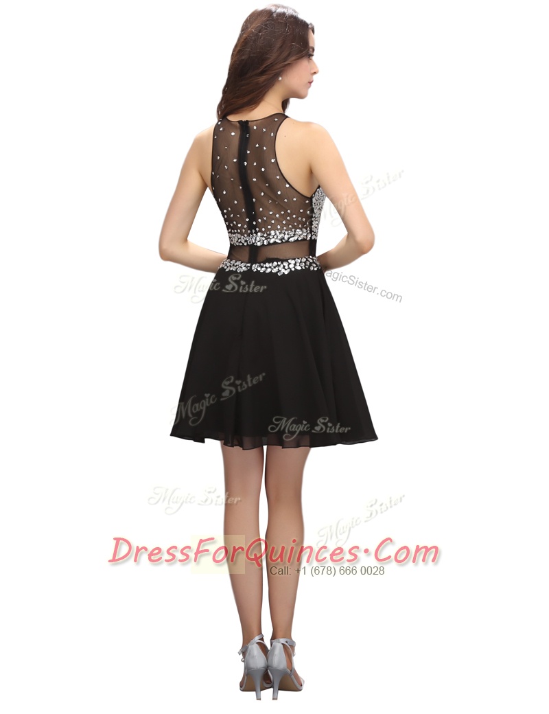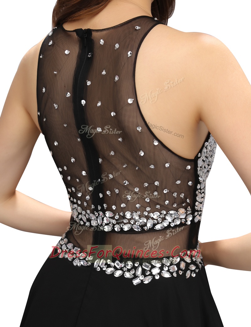 Fantastic Scoop Sleeveless Zipper Mini Length Beading Prom Evening Gown