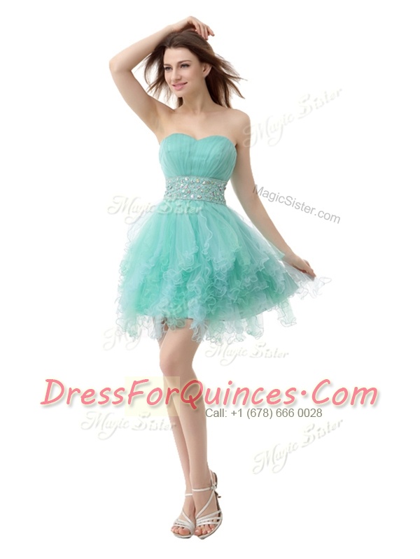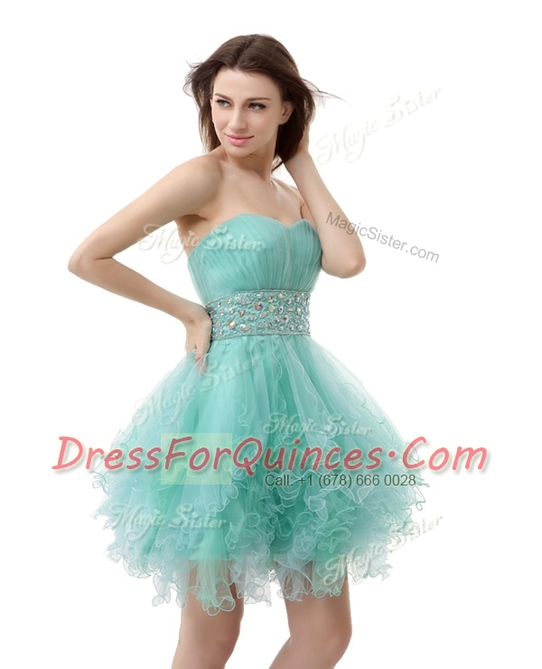 Fine Sleeveless Zipper Mini Length Beading and Ruffled Layers Prom Party Dress