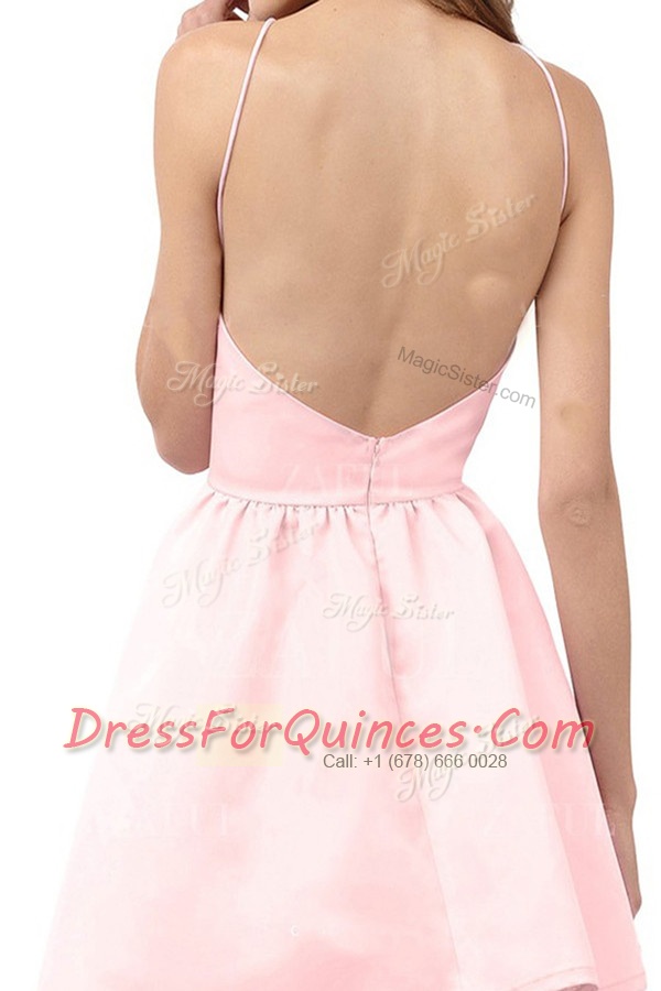 Flirting Sleeveless Mini Length Ruching Backless Prom Evening Gown with Pink