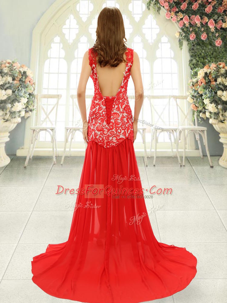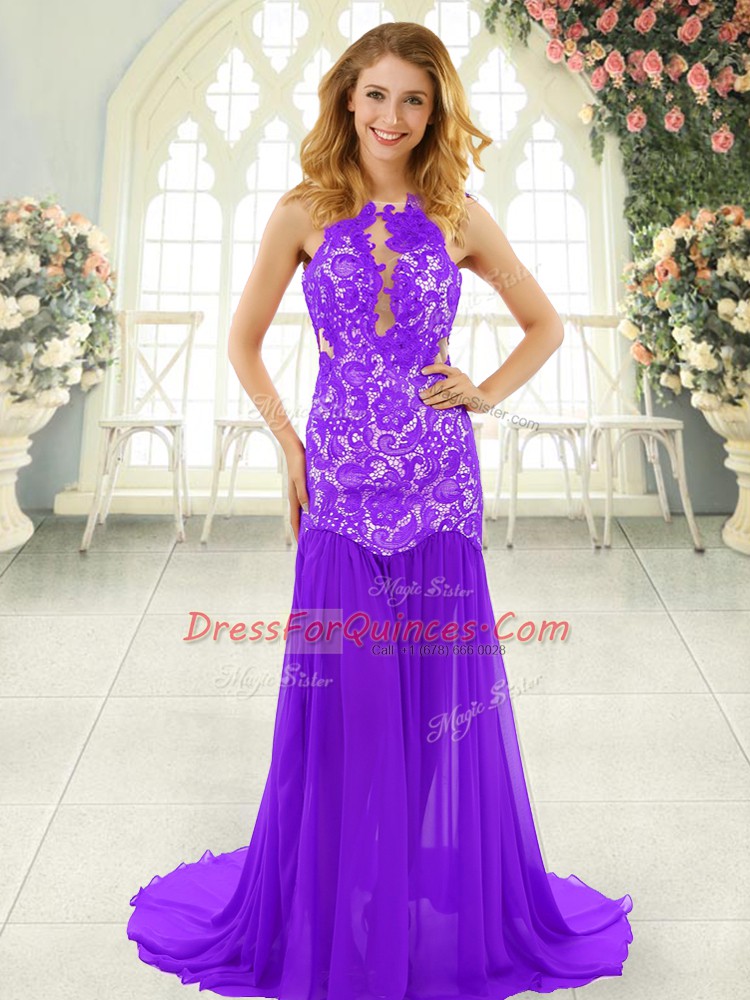 Free and Easy Mermaid Sleeveless Lavender Evening Dress Brush Train Backless
