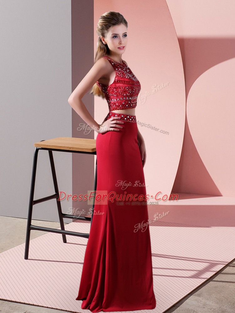 Glittering Red Backless Prom Party Dress Beading Sleeveless Floor Length