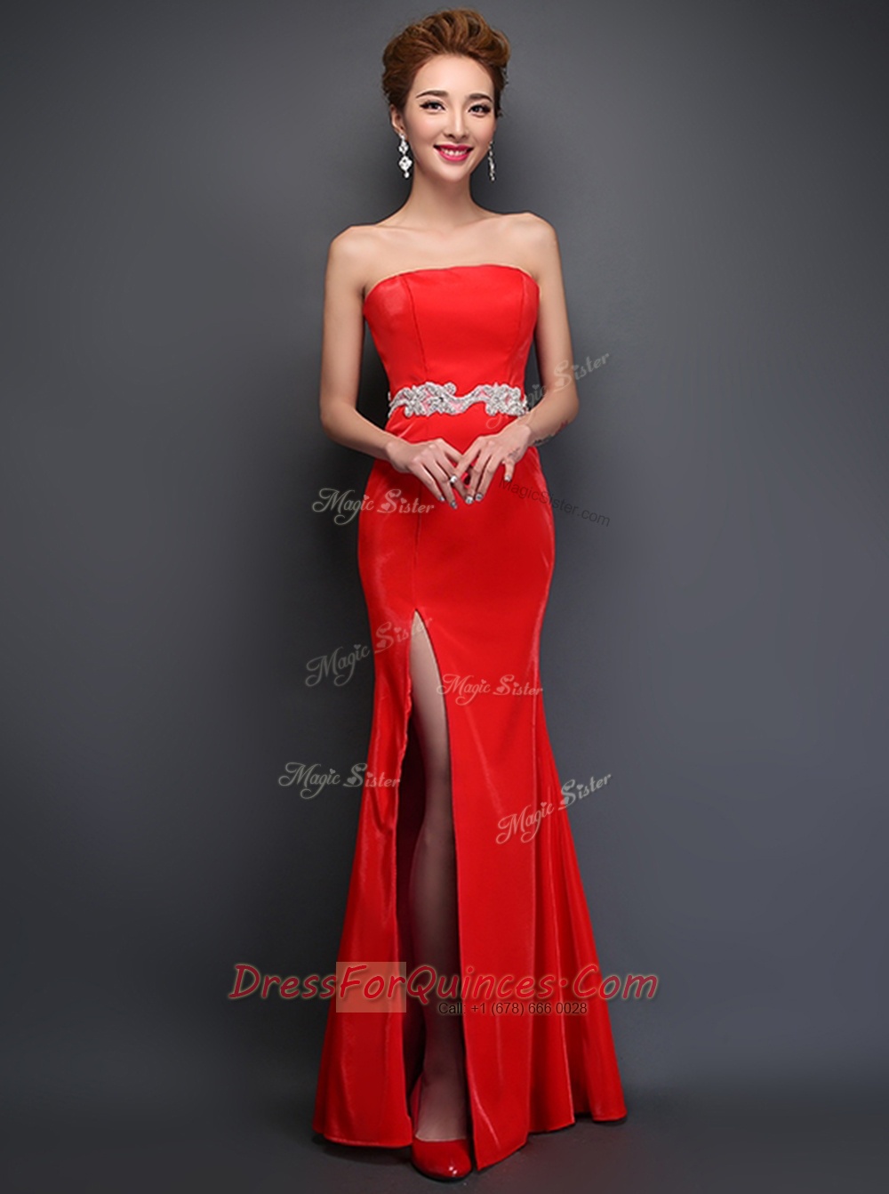 Gorgeous Mermaid Sleeveless Floor Length Beading Lace Up Evening Dress with Red