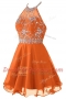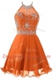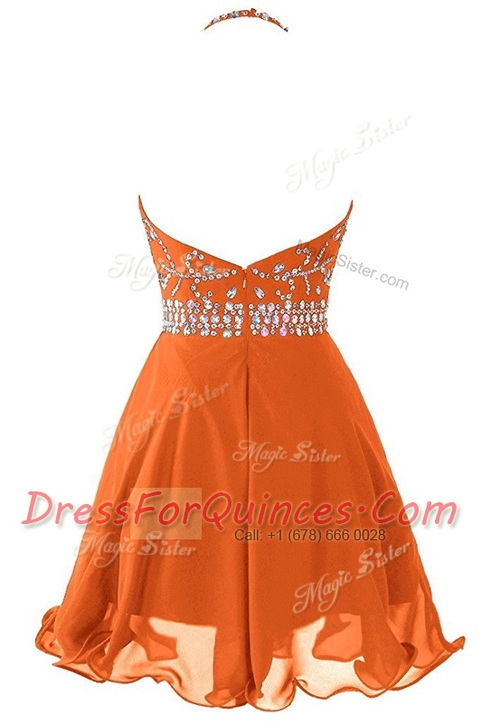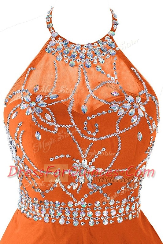 Halter Top Sleeveless Zipper Prom Gown Orange Organza