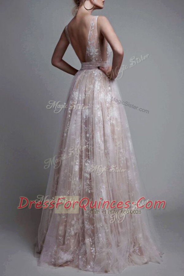 High Class White and Champagne Zipper V-neck Lace Homecoming Dress Tulle Sleeveless