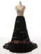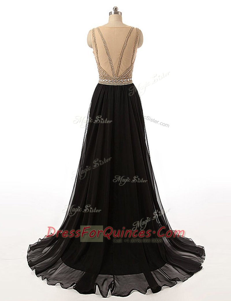 High End Black Sleeveless With Train Beading Side Zipper Prom Party Dress