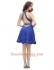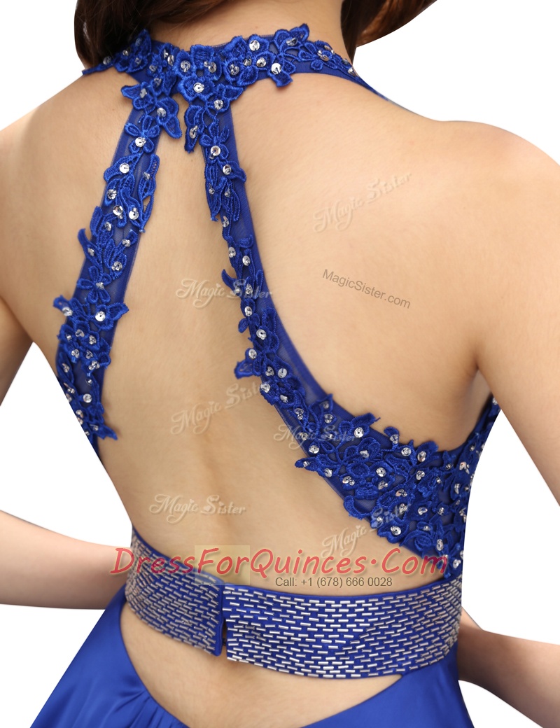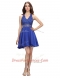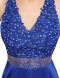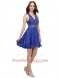 High End Royal Blue Criss Cross V-neck Beading and Belt Prom Dresses Chiffon Sleeveless