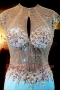 High-neck Cap Sleeves Chiffon Dress for Prom Beading Sweep Train Backless