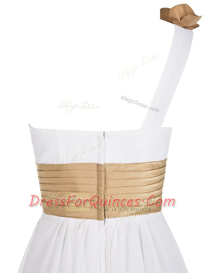 Inexpensive One Shoulder Sleeveless Homecoming Dress Floor Length Ruching White Chiffon