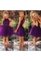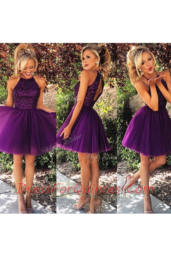 Knee Length Backless Prom Dress Purple for Prom and Party with Beading and Ruching