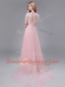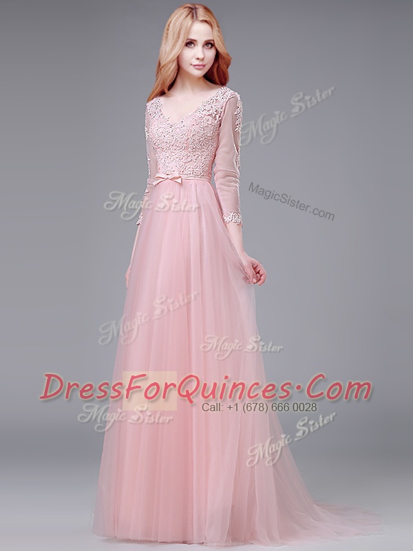 Lace and Bowknot Baby Pink Zipper 3 4 Length Sleeve With Brush Train
