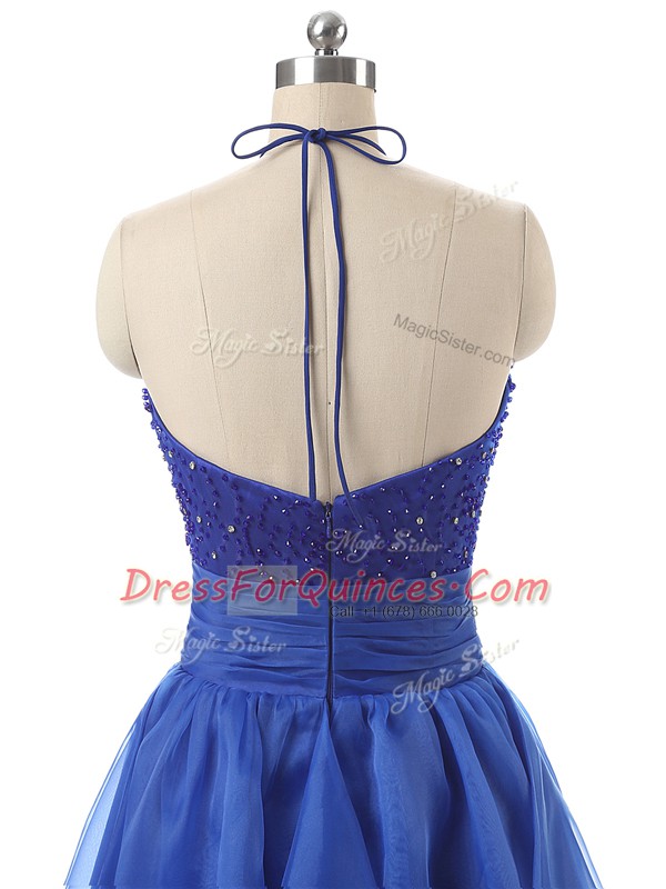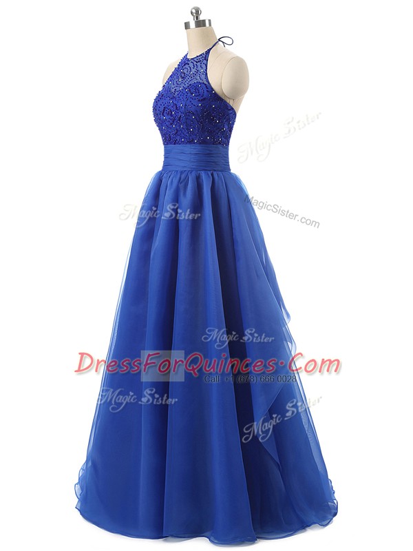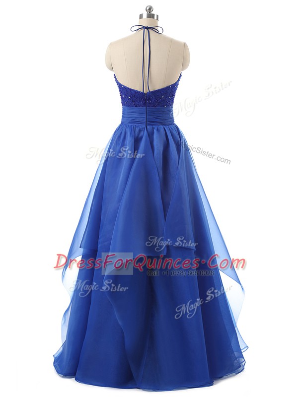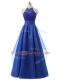 Latest Halter Top Sleeveless Zipper Prom Gown Blue Organza