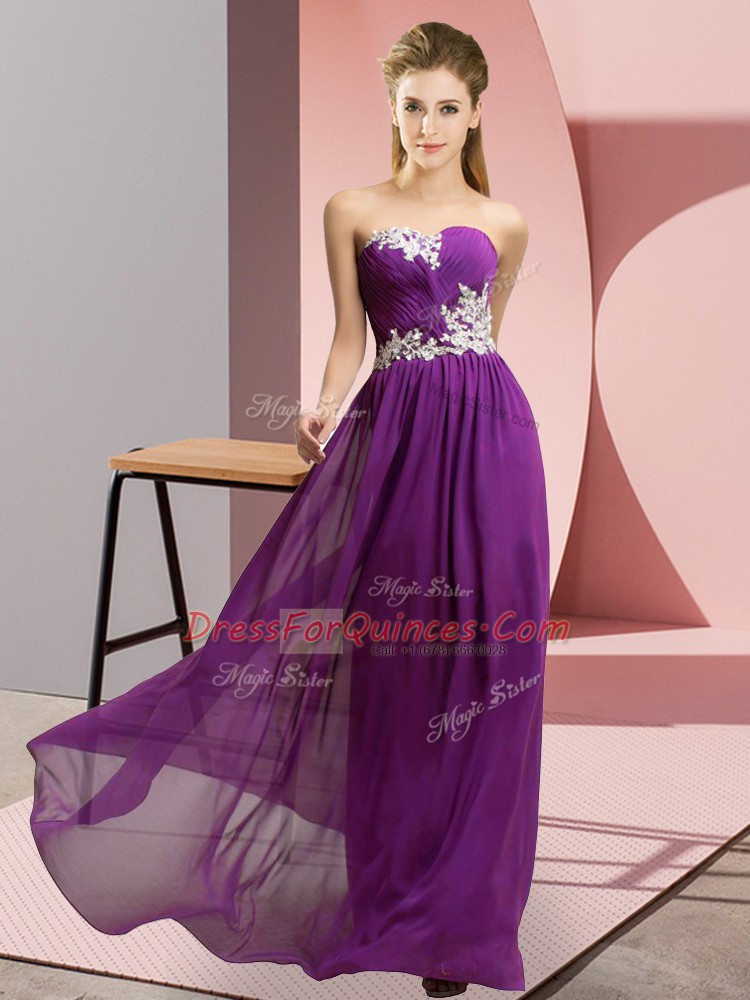 Lovely Chiffon Sweetheart Sleeveless Lace Up Appliques Dress for Prom in Purple