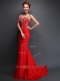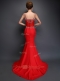 Mermaid Red Satin Zipper Spaghetti Straps Sleeveless With Train Evening Dress Brush Train Beading