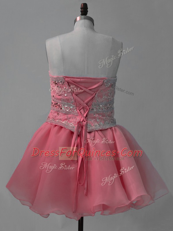 Mini Length Lace Up Prom Dresses Watermelon Red for Prom and Party and Military Ball with Beading