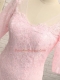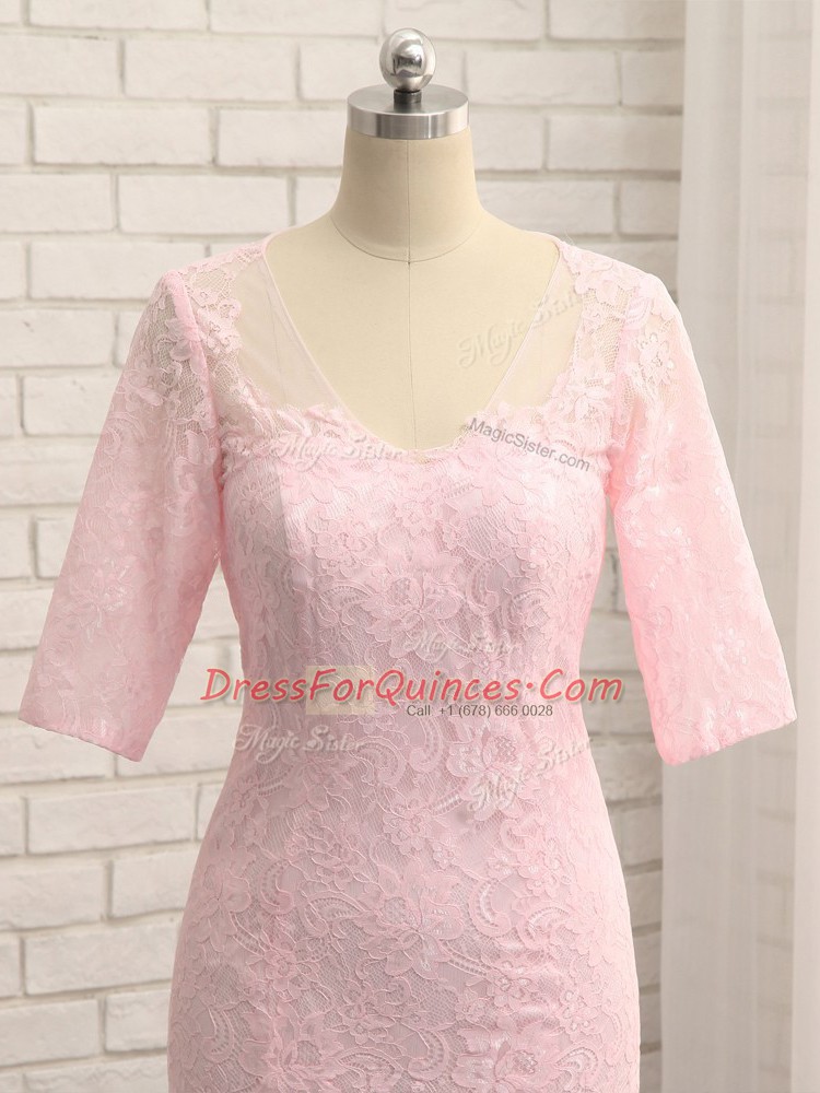 Modern Baby Pink Tulle Zipper V-neck Half Sleeves Floor Length Homecoming Dress Lace and Appliques