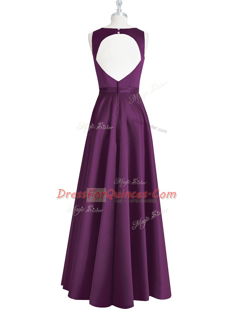 Modern Floor Length Empire Sleeveless Eggplant Purple Prom Dress Backless