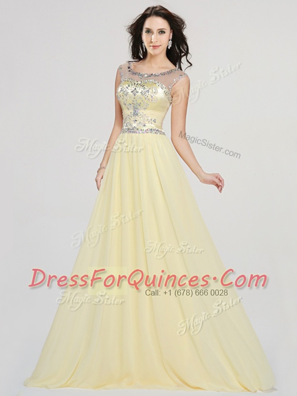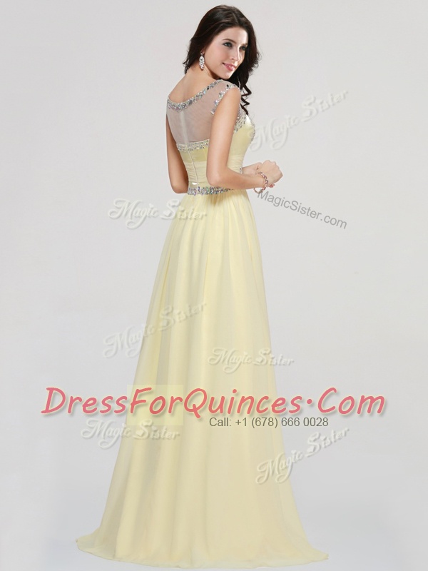 Nice Scoop Chiffon Sleeveless Floor Length and Beading