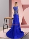 Nice Sleeveless Floor Length Beading Side Zipper Prom Dresses with Royal Blue Sweep Train