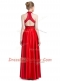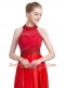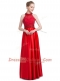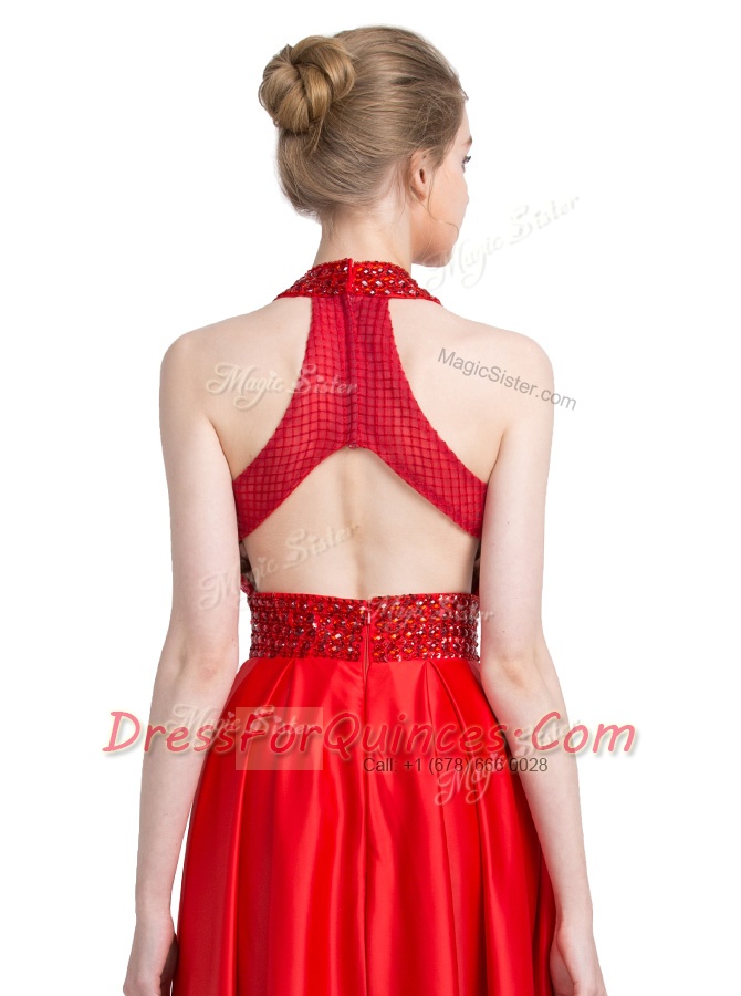 Noble Halter Top Sleeveless Evening Dress Floor Length Beading Red Taffeta