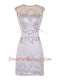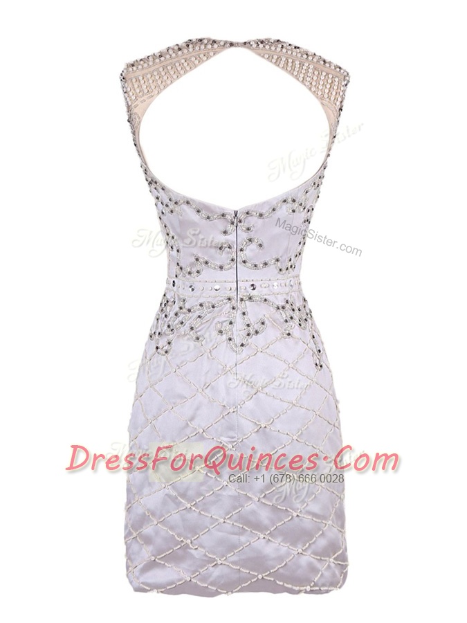 Noble White Column/Sheath Scoop Sleeveless Satin Mini Length Zipper Beading Homecoming Dress