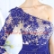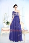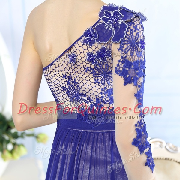One Shoulder Blue Long Sleeves Beading and Appliques Floor Length Dress for Prom