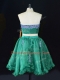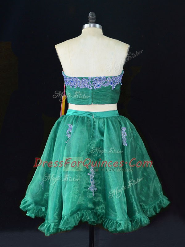 Organza Sleeveless Mini Length Prom Gown and Appliques and Ruffles
