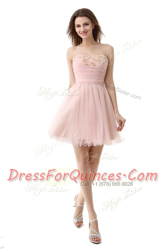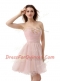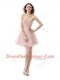 Pink Sleeveless Mini Length Beading and Ruching Zipper Dress for Prom