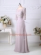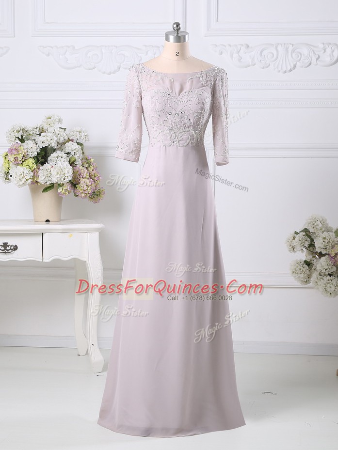 Pink Zipper Scoop Beading and Embroidery Prom Party Dress Chiffon 3 4 Length Sleeve