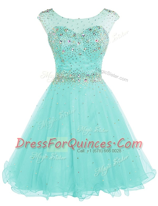 Pretty Scoop Apple Green Sleeveless Chiffon Backless Dress for Prom for Prom and Party