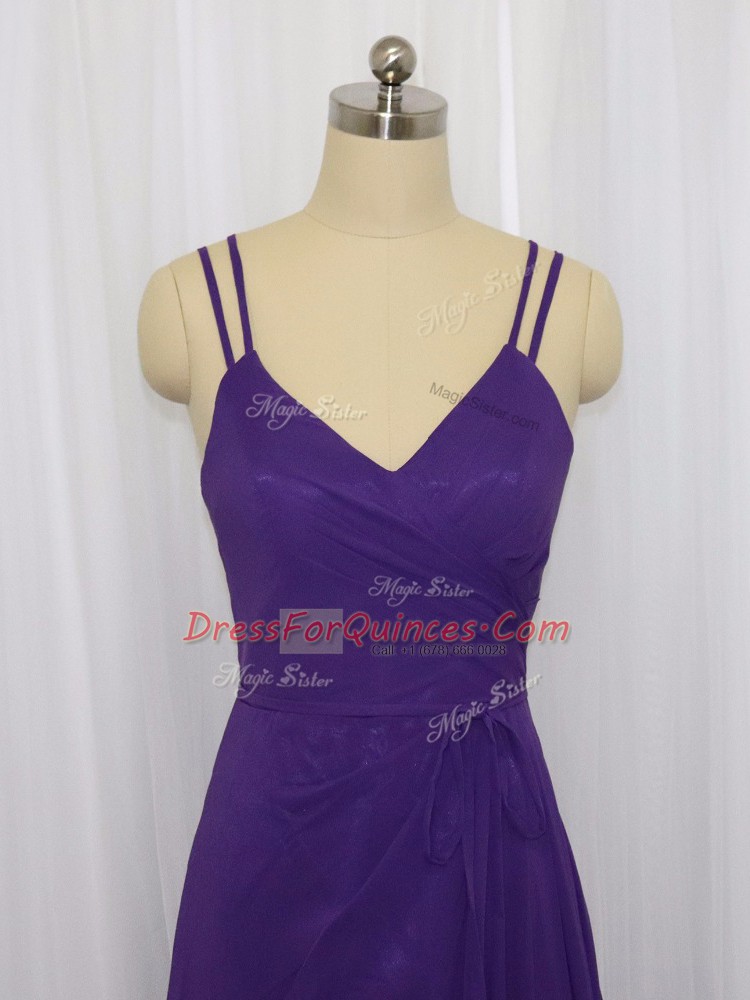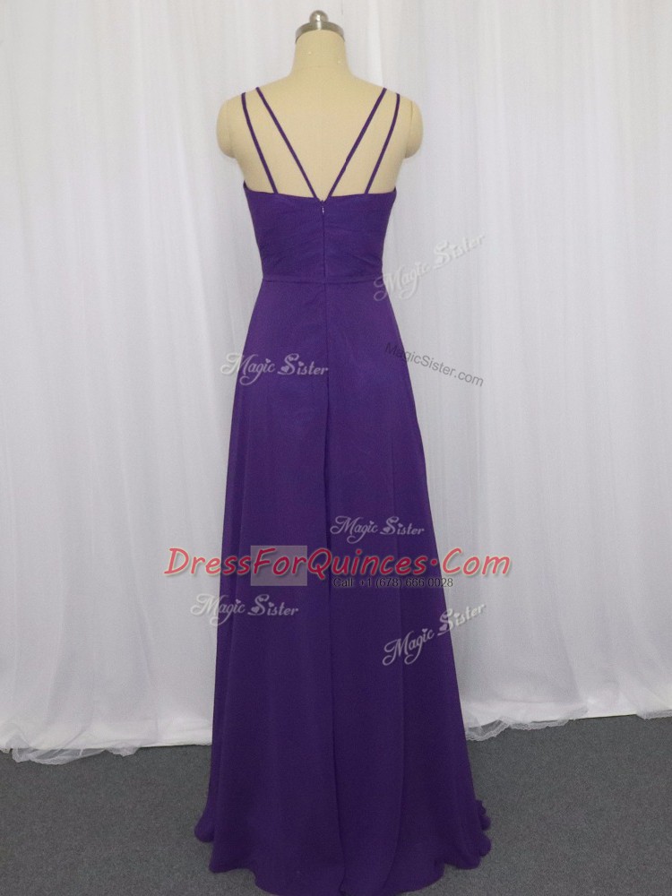 Purple Chiffon Zipper Dress for Prom Sleeveless Floor Length Ruching