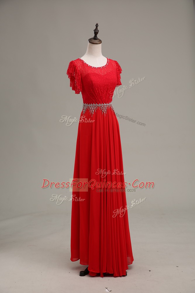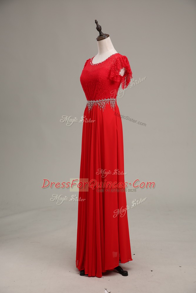 Red Sleeveless Chiffon Zipper Prom Party Dress for Prom and Party and Military Ball