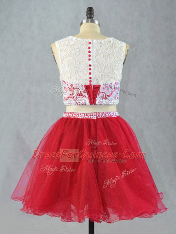 Red Sleeveless Mini Length Lace and Appliques Zipper Prom Dresses