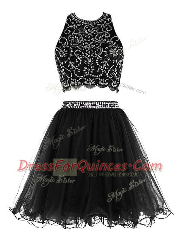 Scoop Black Chiffon Clasp Handle Prom Evening Gown Sleeveless Mini Length Beading